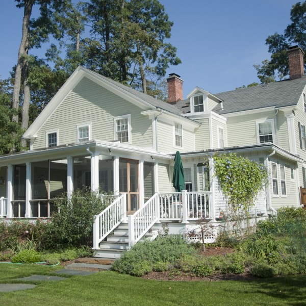 This complete makeover of an 1805 center hall Colonial in downtown Lenox removed many alterations made over the years that compromised the layout of the first floor. The kitchen was relocated to create an informal eating area and family room connected by a large archway. The master suite was reworked to create two walk-in closets and a large master bathroom. Additionally, five other bathrooms and a laundry room were fully gutted and refitted with new fixtures and tiles. An addition in the back contains a new screen porch and mudroom entrance from the parking area. This house was fully renovated to perform for the next 200 years with spray foam insulation and all new mechanicals. Interior Design by Karen Beckwith Art and Interiors.